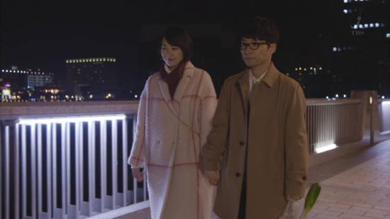 在与小安的聚会中,实栗接到了“婆婆”的电话,询问婚后的生活。背景中我们可以看到另一个横滨有名的建筑群——‘红砖仓库’。