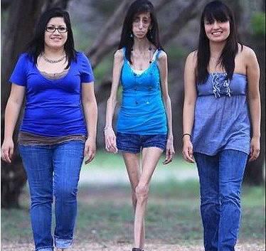 今年27岁的美国德克萨斯女孩:丽兹(Lizzie Velasquez)身高157cm,体重仅有27.3千克,相当于一个八岁女孩的体重,身体基本没有脂肪,弱不禁风,因此被称为“骷髅女孩”。